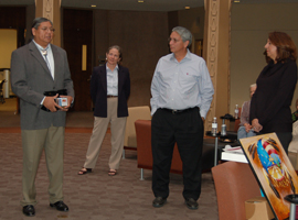 Pat Mariella, the institute’s director, presented Gover with a plaque and thanked him for his leadership, while Eddie Brown, the institute’s co-executive director with Gover, gave him an ASU polo shirt to remind him of his academic roots.