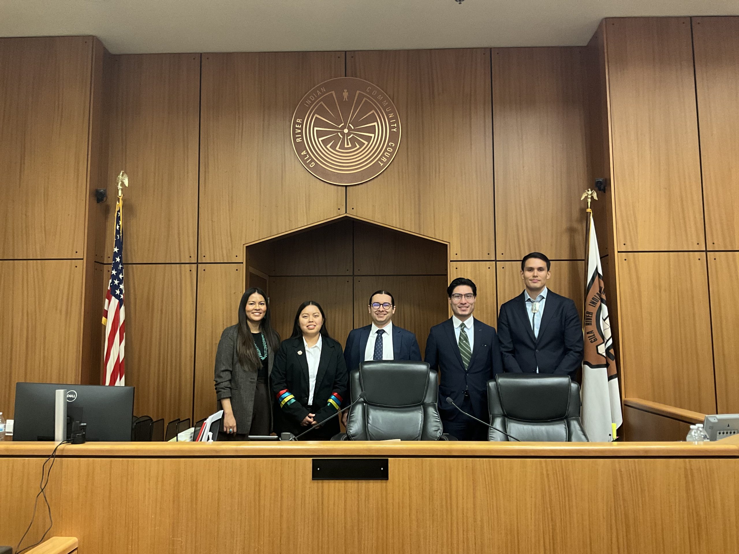 To kick off the spring semester, Professor Patty Ferguson-Bohnee and Indian Legal Clinic students Jerimy Billy, Angel Nosie, Justice Oglesby, Crispin South and Monique Tsosie traveled to the Ak-Chin Indian Community Tribal Court in Maricopa, Arizona, and the Gila River Indian Community Court in Sacaton on Jan. 30. The visit marked the beginning of the students’ hands-on legal training, where they will work directly with real clients through the clinic.